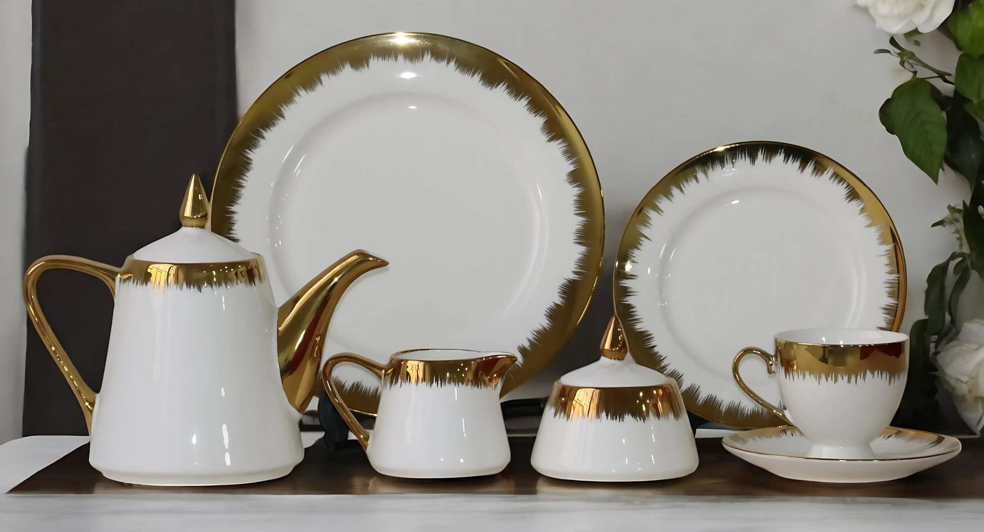 Designed for those who appreciate high-quality crockery, the D001 Tea Set features elegant curves, a rich gold finish, and durable craftsmanship—making it both stylish and long-lasting.