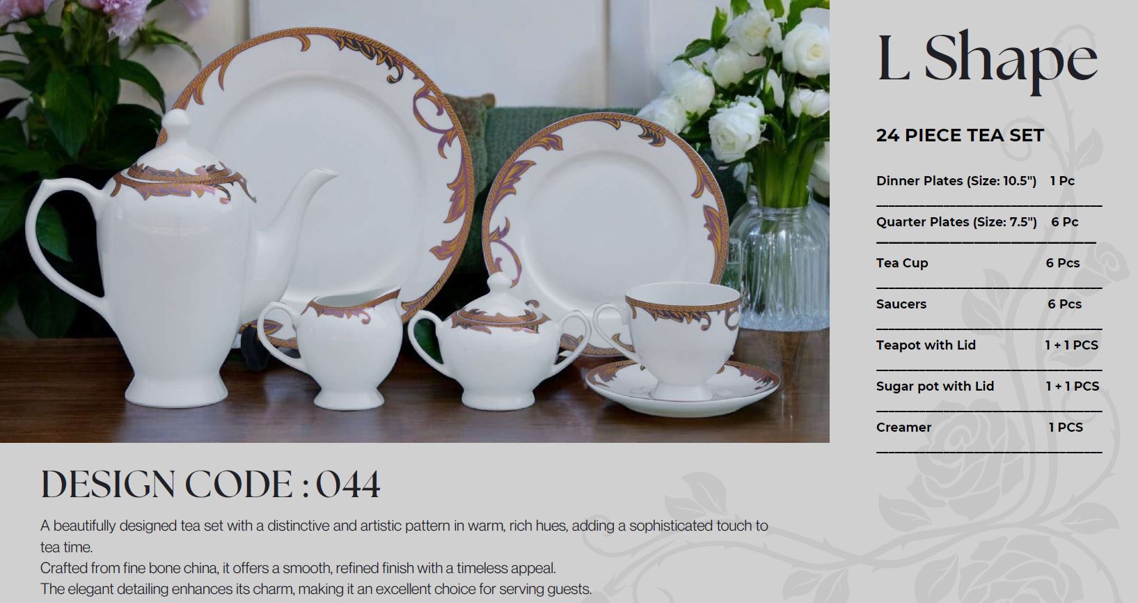24-Piece Tea Set (L044) | High-Quality Elegant Tea Crockery
