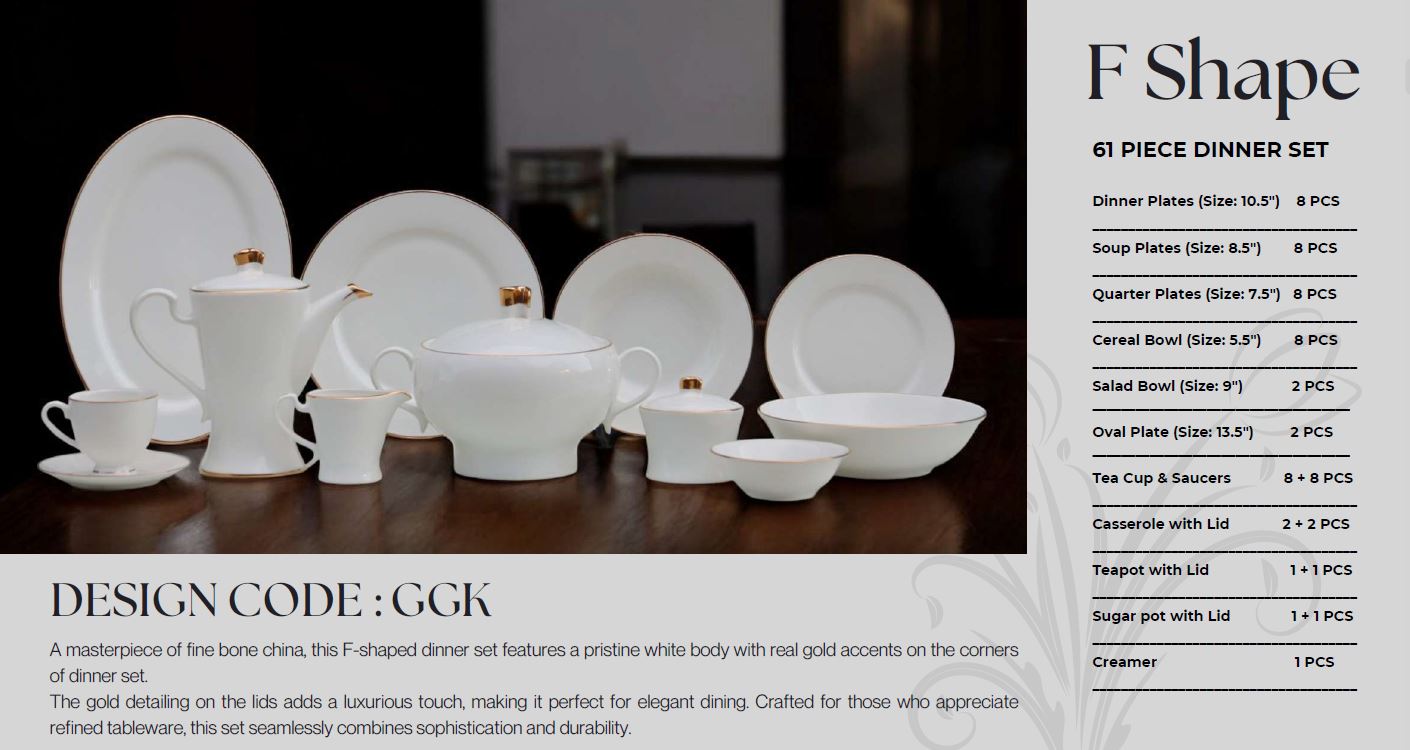 61 Pc Bone China Dinner Set (VGGK) – Premium Quality, Stylish & Elegant Dinnerware