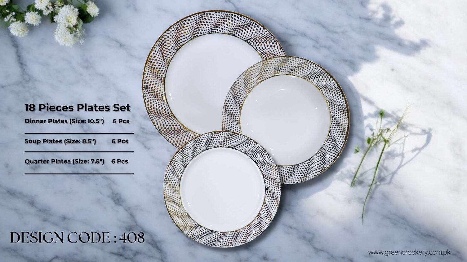 Experience elegance and durability with this 001 Electro Plate Set, crafted from premium bone-quality material. Designed for both everyday use and special occasions, this set offers a lightweight, glossy finish with excellent heat-resistance. Its smooth surface, fine texture, and modern design make your dining experience luxurious and convenient.