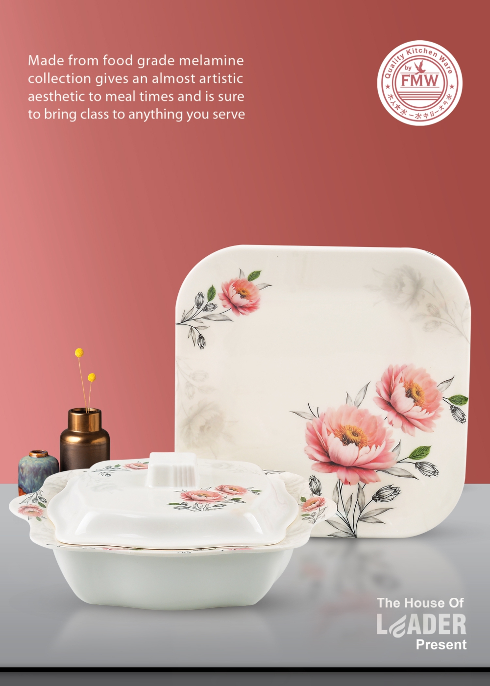 Whether you’re hosting a family dinner, serving guests, or gifting someone special, the Melamine Dinner Set Beauty dinner set (506) is a perfect choice that brings beauty, reliability, and long-term value to your kitchen.