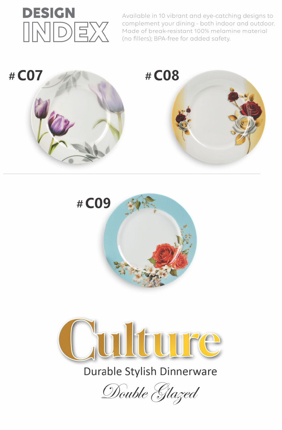 Upgrade your dining experience with the Melamine Dinner Set Culture (C08), crafted with premium-quality melamine to give you the perfect combination of style, durability, and convenience. This elegant dinner set is designed to be unbreakable, lightweight, and heat-resistant, making it ideal for both everyday use and special gatherings.
