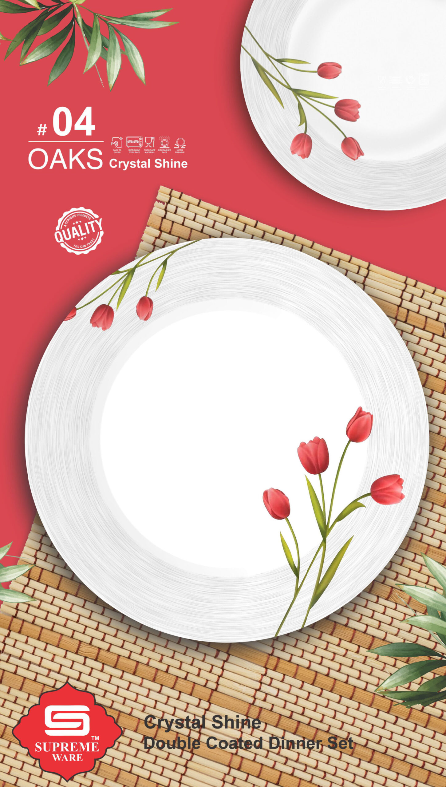 Upgrade your dining experience with the Melamine Dinner Set Oaks Dinner (04), crafted with premium-quality melamine to give you the perfect combination of style, durability, and convenience. This elegant dinner set is designed to be unbreakable, lightweight, and heat-resistant, making it ideal for both everyday use and special gatherings.